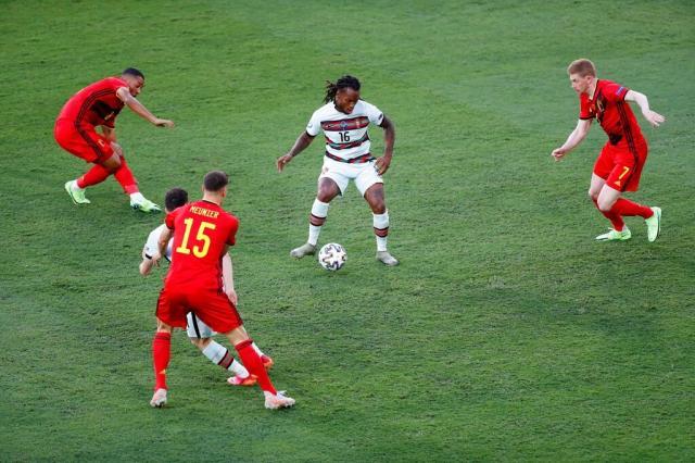 这个彻彻底底的中场改变以削弱中场拦截能力为代价,目的是提升出球速度,加快由守转攻的节奏。葡萄牙攻击到前场的频率确实有提高,但是也有一个明显的问题,就是这三人之间还缺少默契。帕利尼亚首次代表国家队在大赛中首发,经验并不充足,多次犯规,如果不是裁判仁慈,他肯定会因为拉拽卢卡库吃到第二张黄牌。